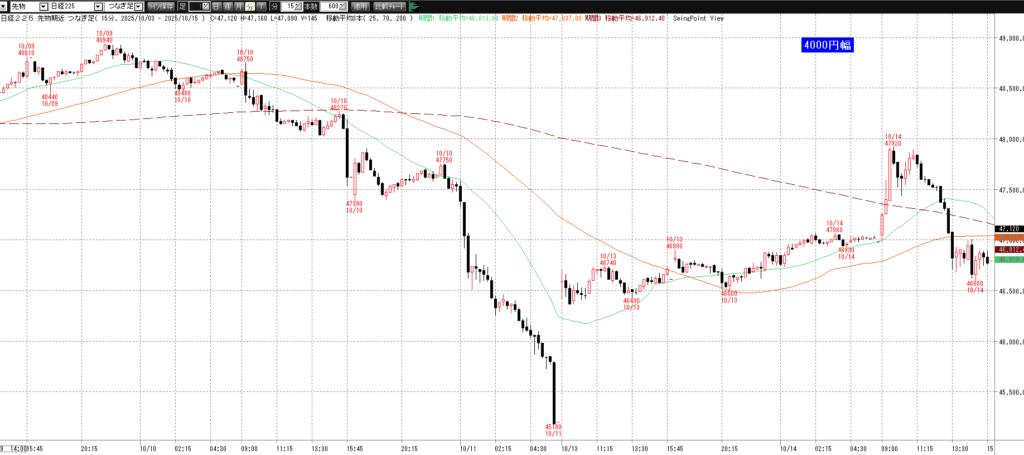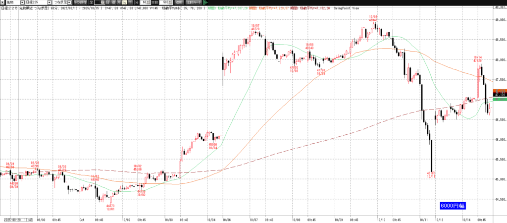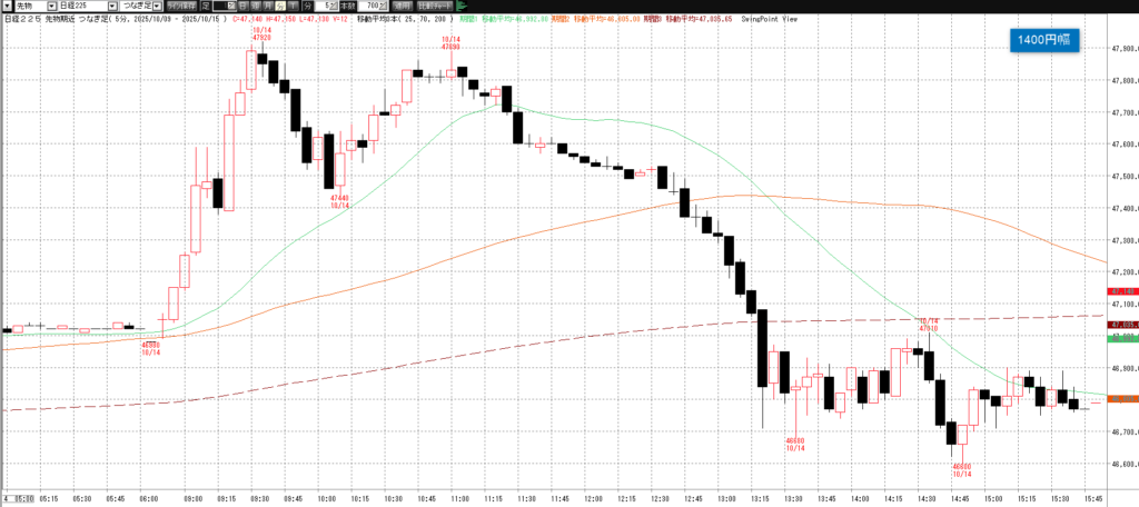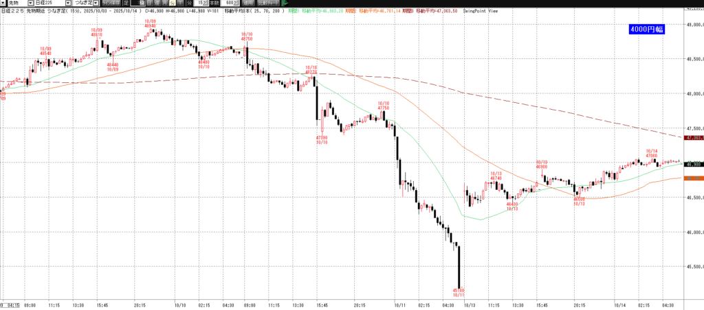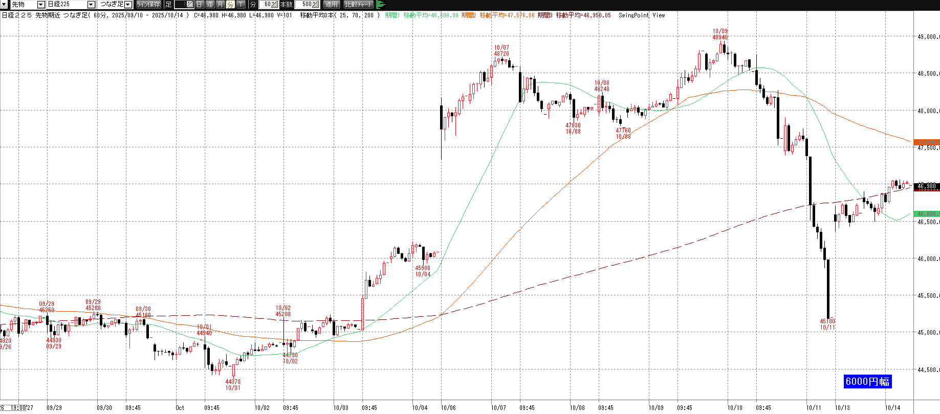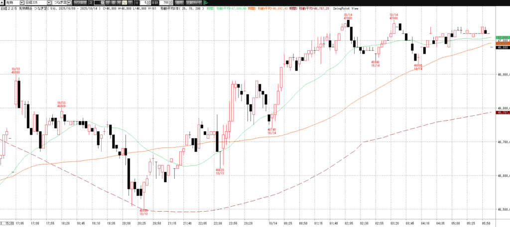10月14日(火)トレード記録 2025.10.14 前営業日(10月13日(月・祝)) ナイト終了後のチャート 60分足 15分足 5分足 10月14日(火) チャート 60分足 15分足 5分足 トレード結果 ノートレード