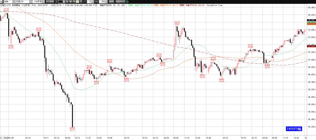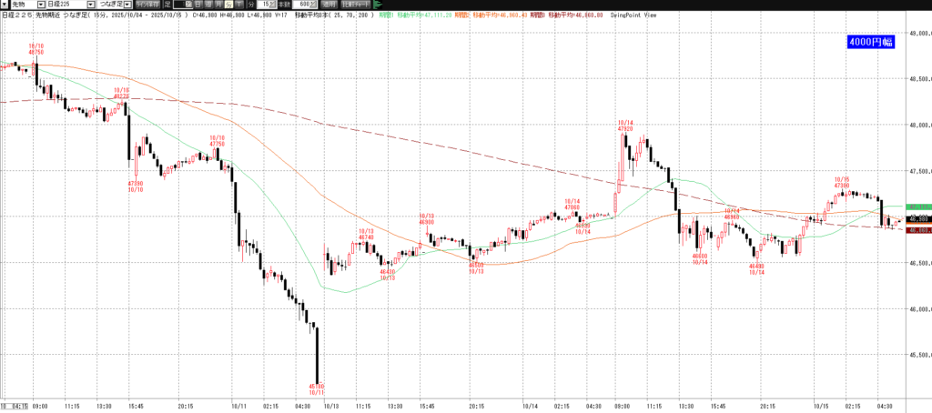 10月15日(水)トレード記録 2025.10.15 前営業日(10月14日(火)) ナイト終了後のチャート 60分足 15分足 5分足 10月15日(水) チャート 60分足 15分足 5分足 トレード結果 ノートレード