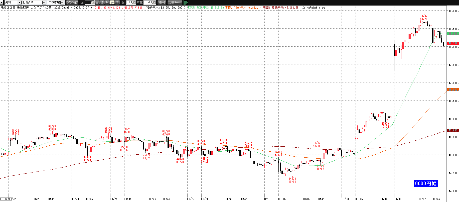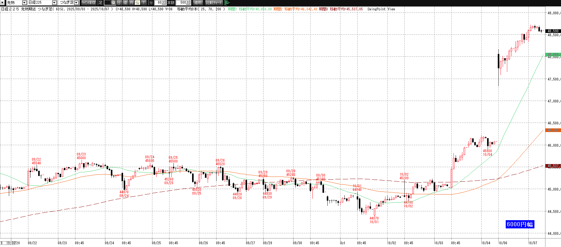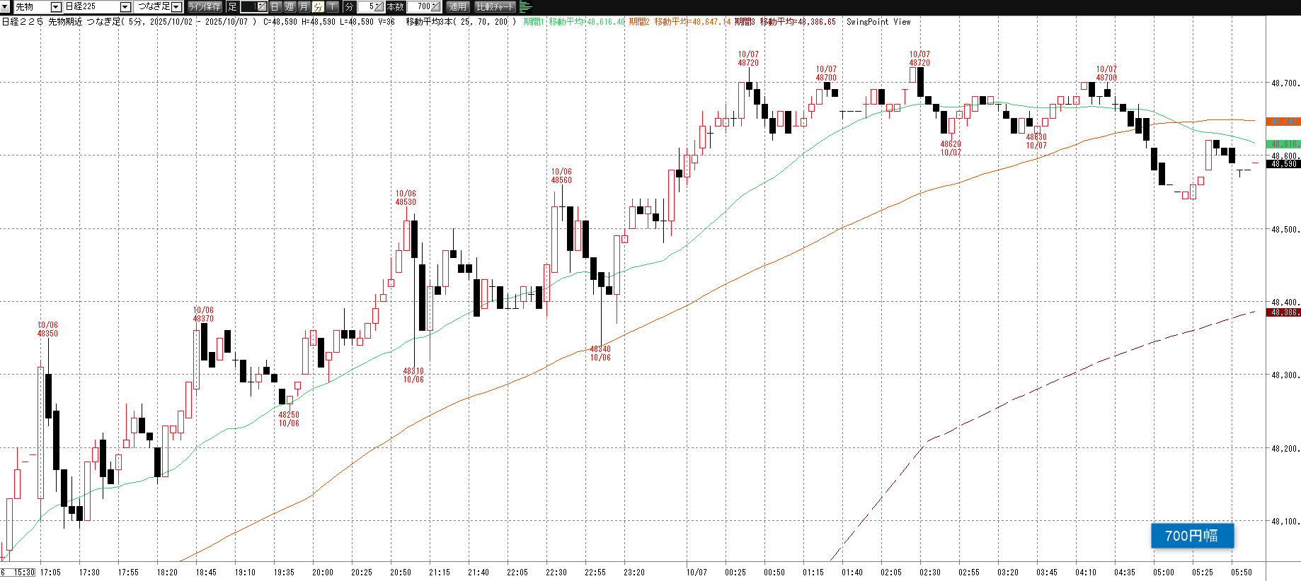 前営業日(10月6日(月)) ナイト終了後のチャート