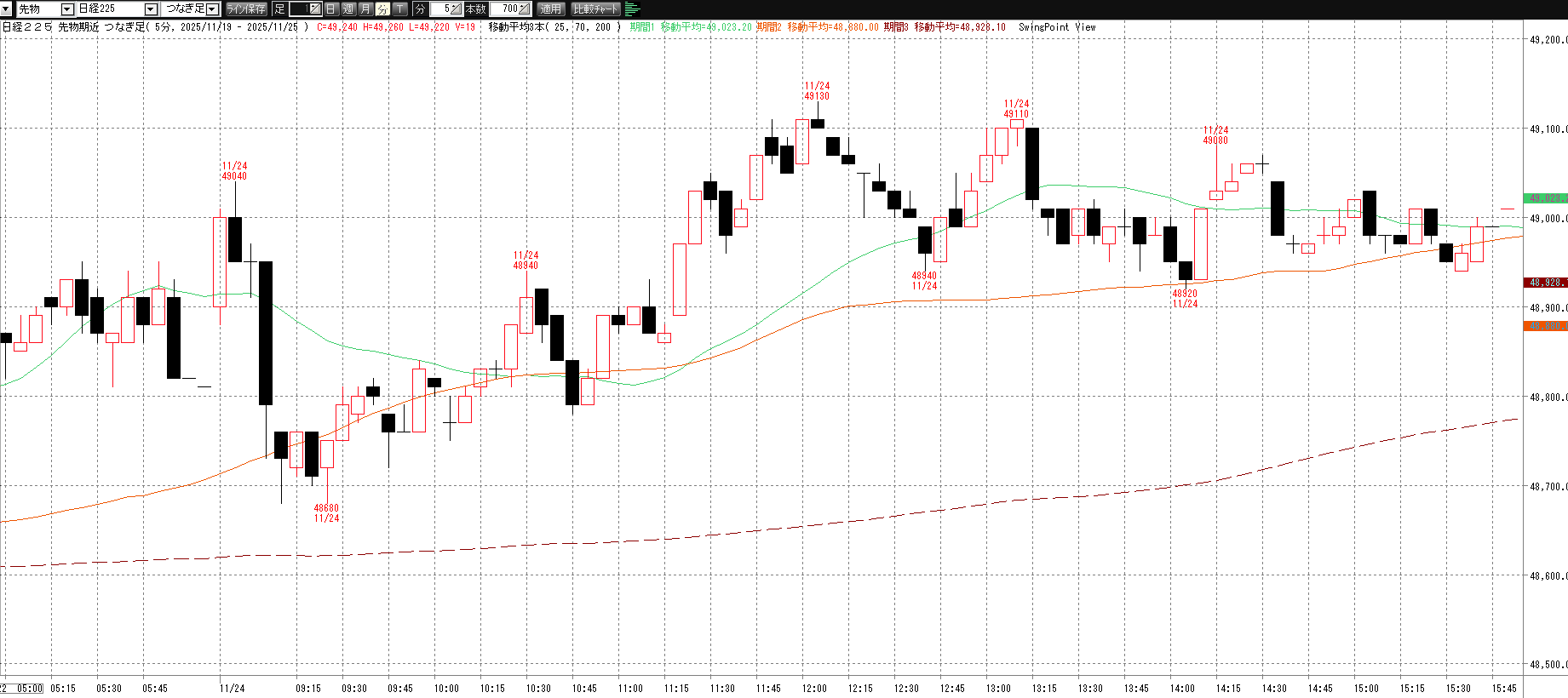 11月24日(月・祝)トレード記録 2025.11.24 前営業日(11月21日(金)) ナイト終了後のチャート 60分足 15分足 5分足 11月24日(月・祝) チャート 60分足 15分足 5分足 トレード結果 ノートレード