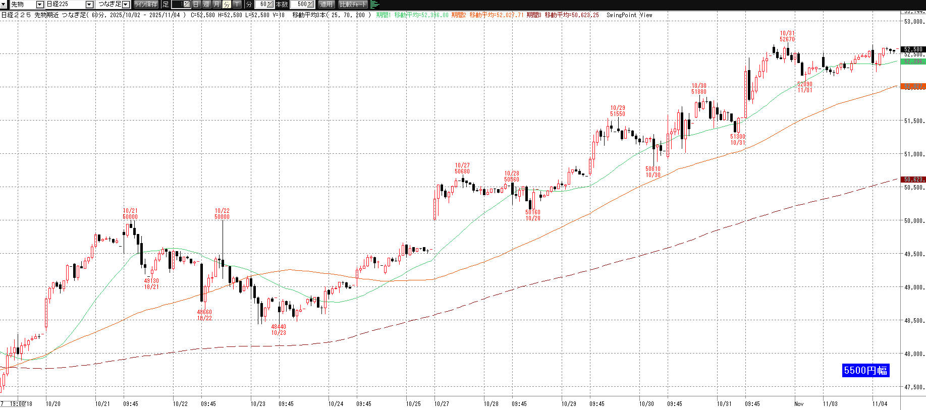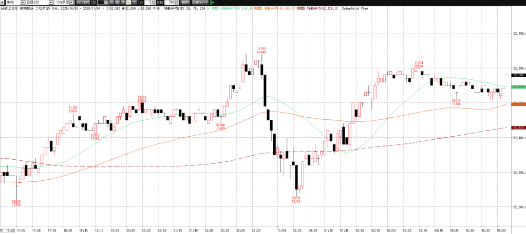 11月4日(火)トレード記録 2025.11.04 前営業日(11月3日(月・祝)) ナイト終了後のチャート 60分足 15分足 5分足 11月4日(火) チャート 60分足 15分足 5分足 トレード結果 ノートレード