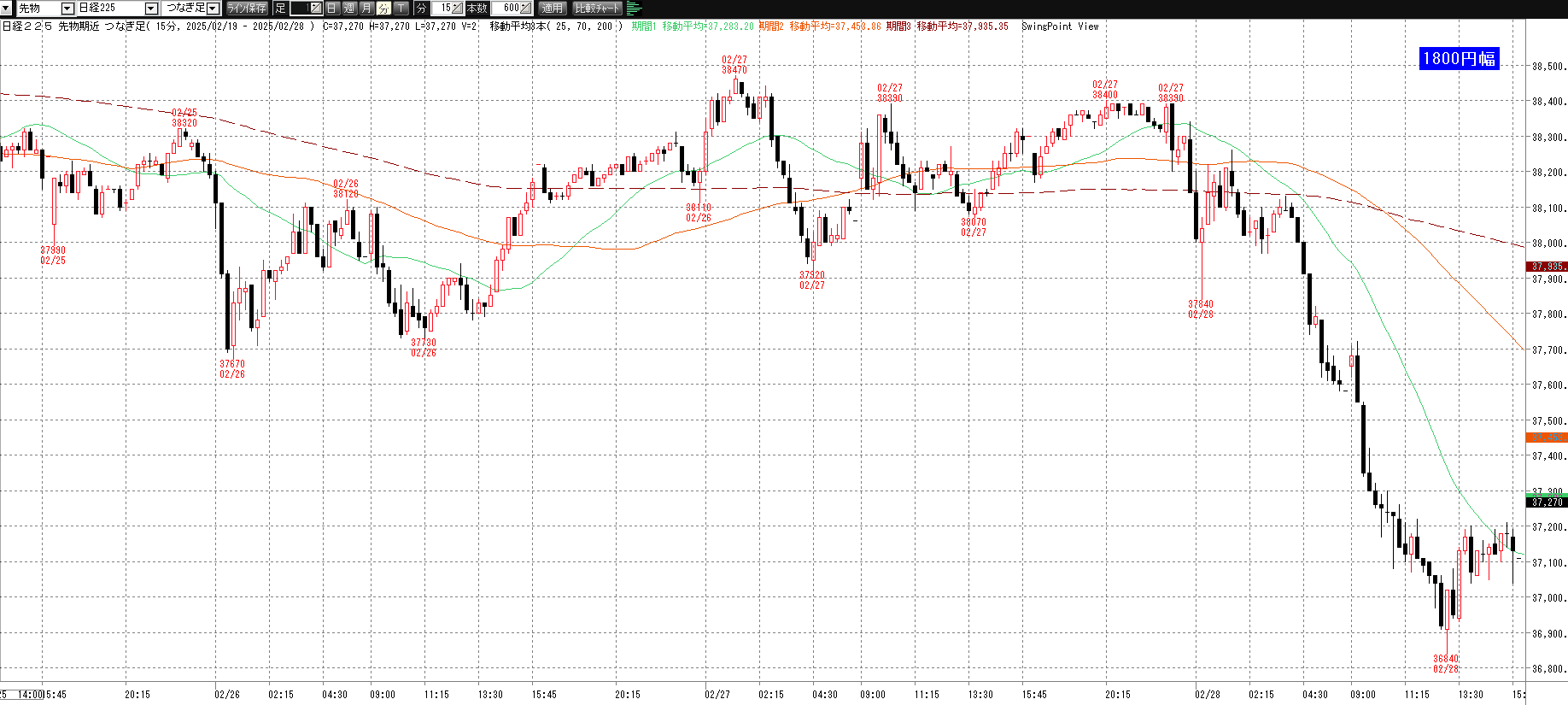 2月28日(金)トレード記録 2025.02.28 前営業日(2月27日(木)) ナイト終了後のチャート 60分足 15分足 5分足 トレード戦略 (省略) 2月28日(金) チャート 60分足 15分足 5分足 トレード結果 ノートレード