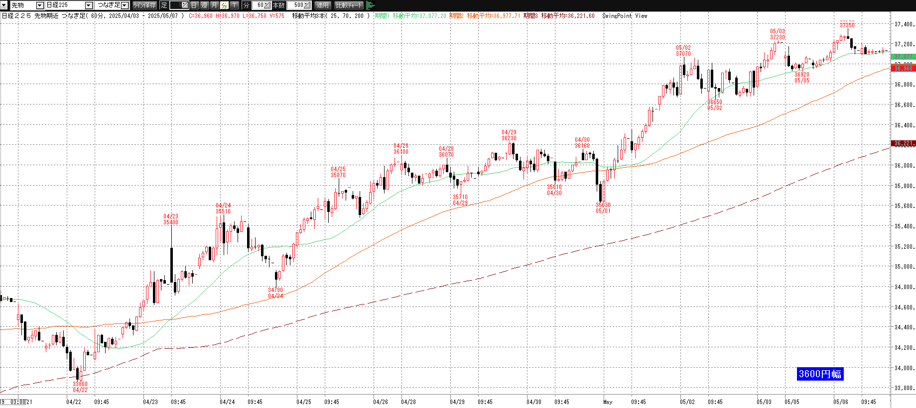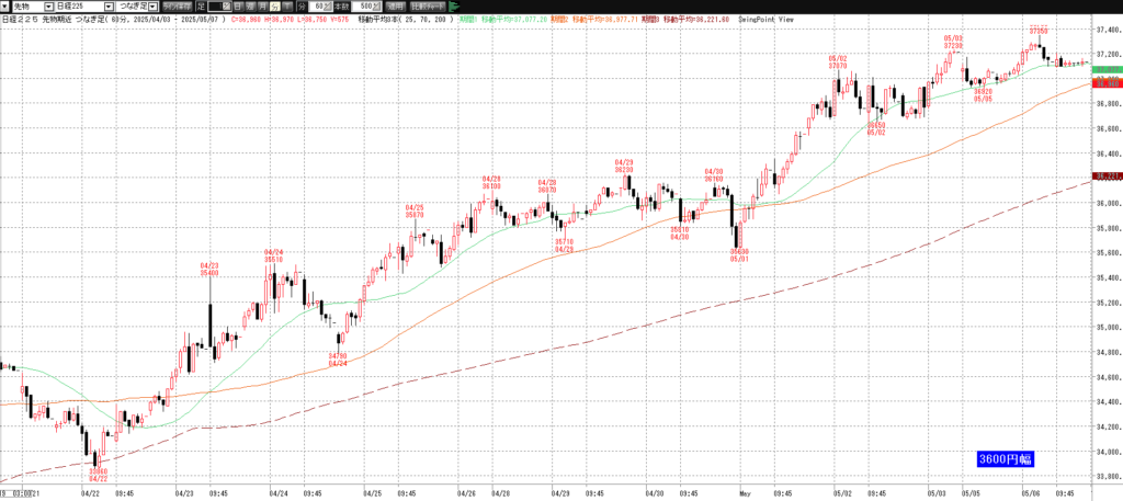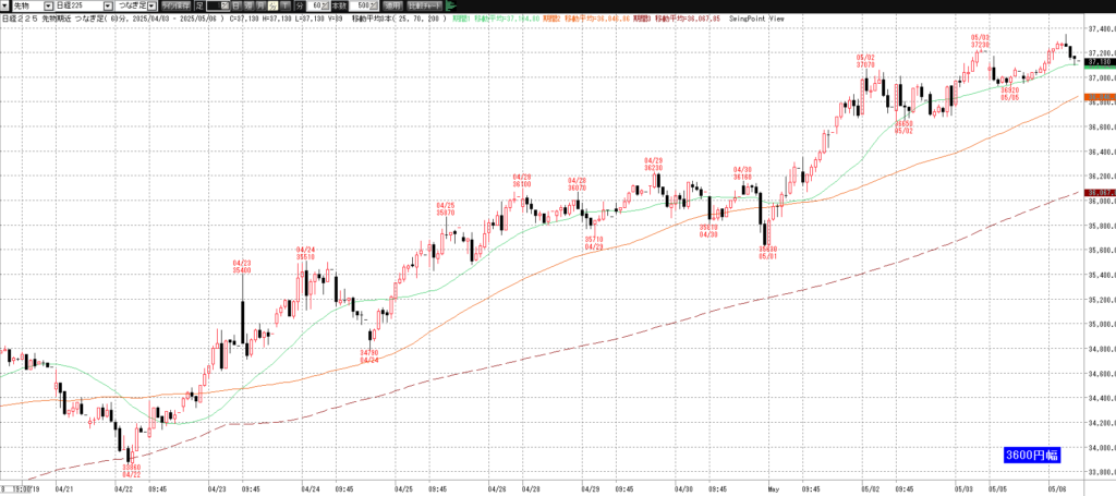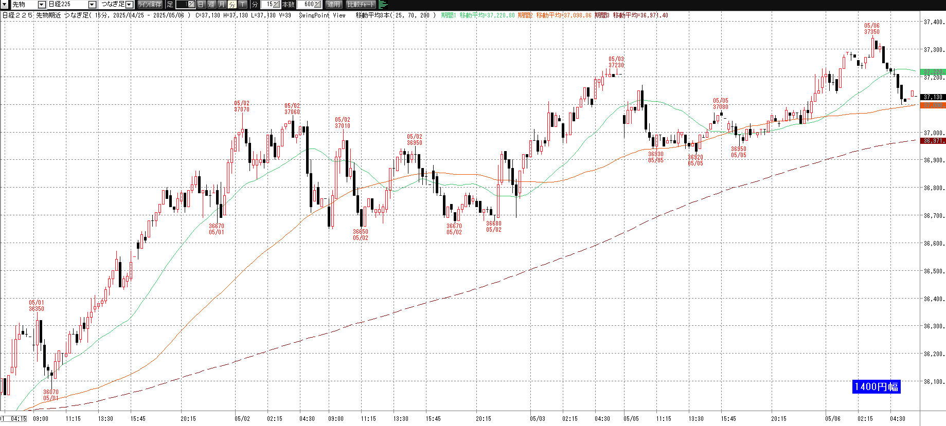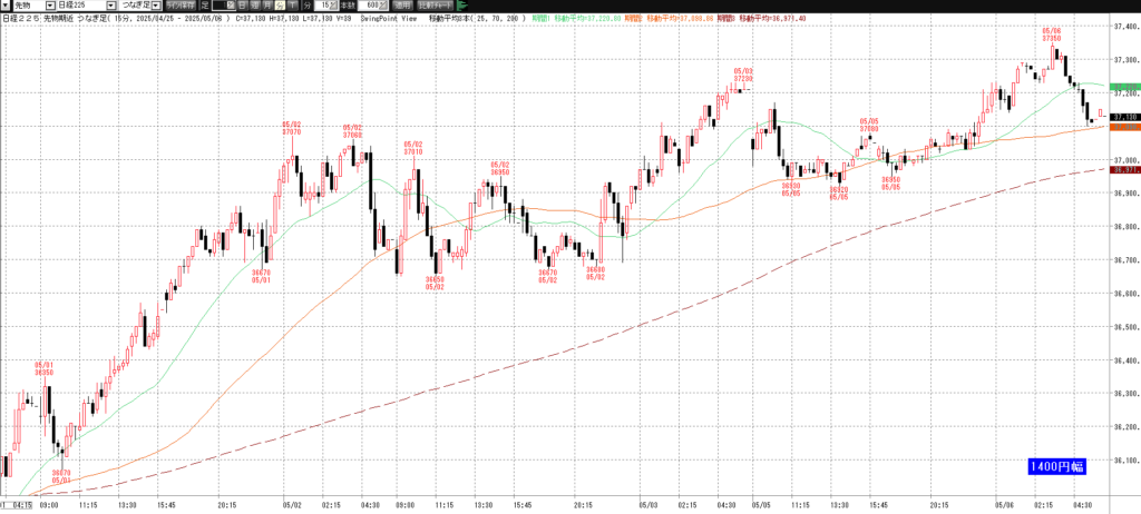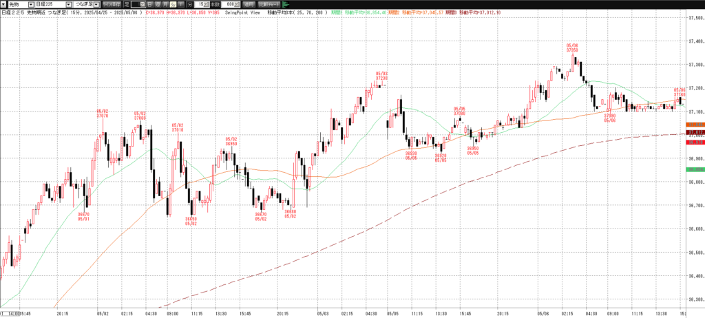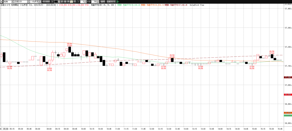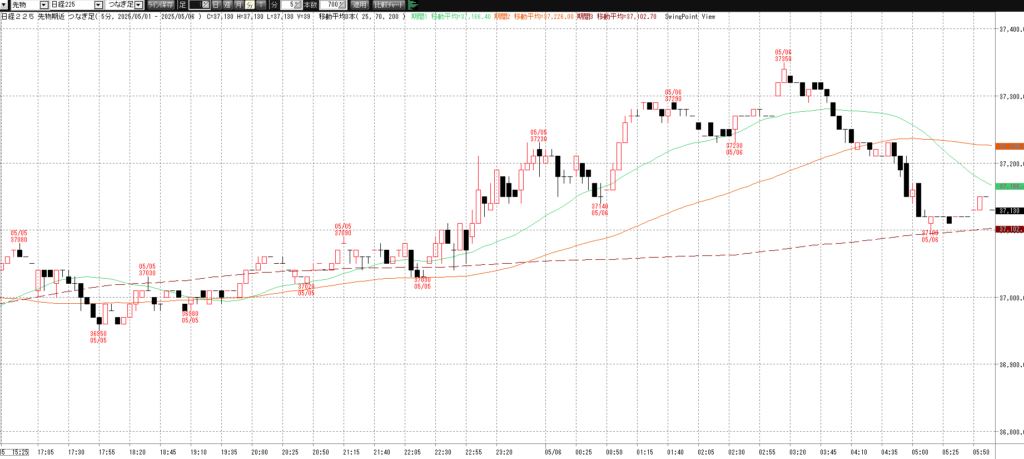 5月6日(火・祝)トレード記録 2025.05.06 前営業日(5月5日(月・祝)) ナイト終了後のチャート 60分足 15分足 5分足 トレード戦略 (省略) 5月6日(火・祝) チャート 60分足 15分足 5分足 トレード結果 ノートレード