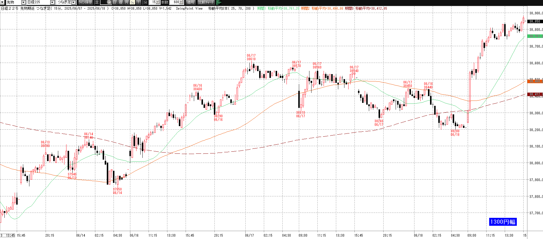 6月18日(水)トレード記録 2025.06.18 前営業日(6月17日(火)) ナイト終了後のチャート 60分足 15分足 5分足 トレード戦略 (省略) 6月18日(水) チャート 60分足 15分足 5分足 トレード結果 ノートレード