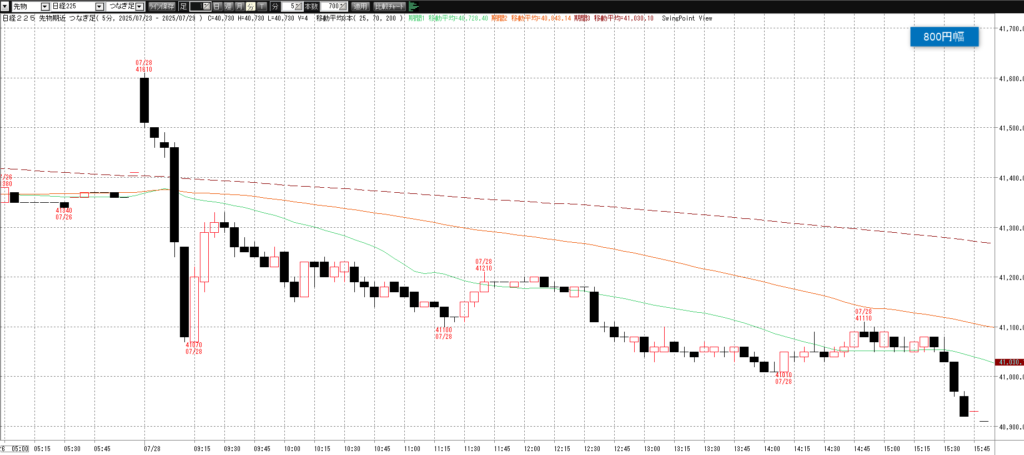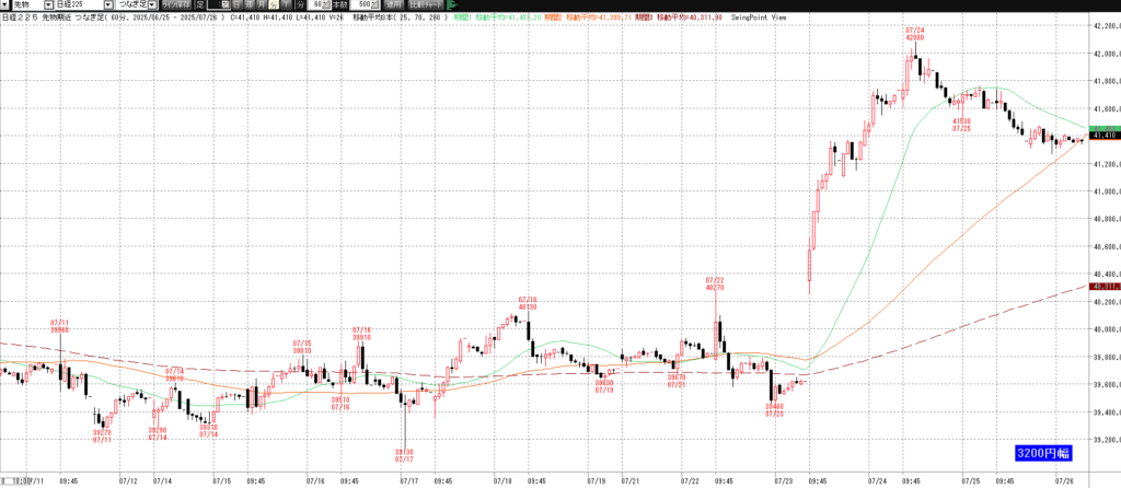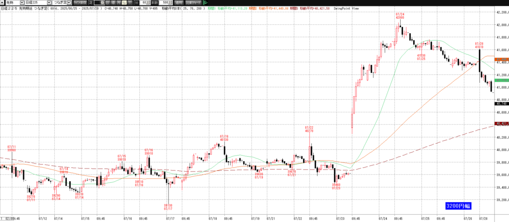 7月28日(月)トレード記録 2025.07.28 前営業日(7月25日(金)) ナイト終了後のチャート 60分足 15分足 5分足 トレード戦略 (省略) 7月28日(月) チャート 60分足 15分足 5分足 トレード結果 ノートレード