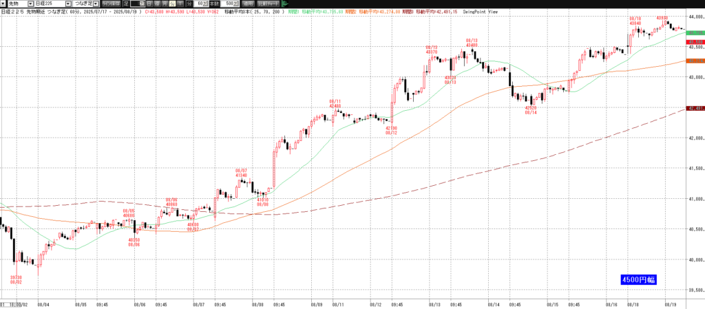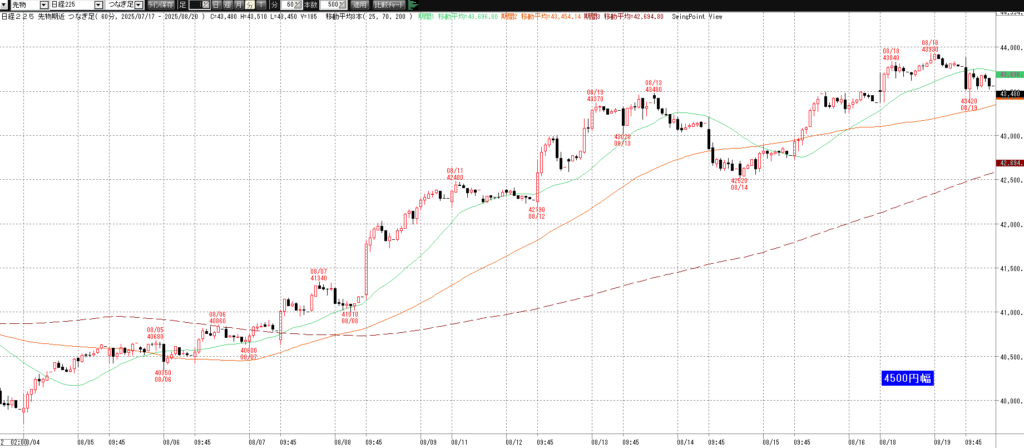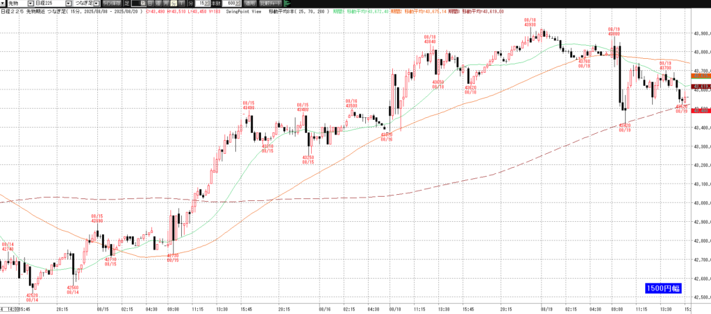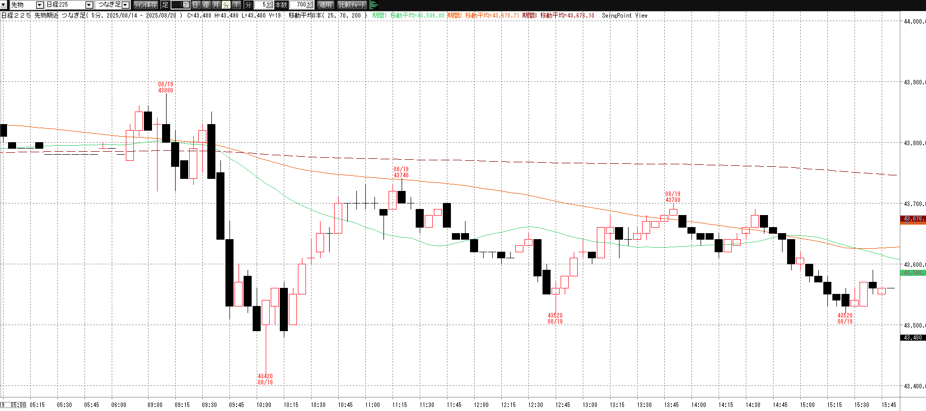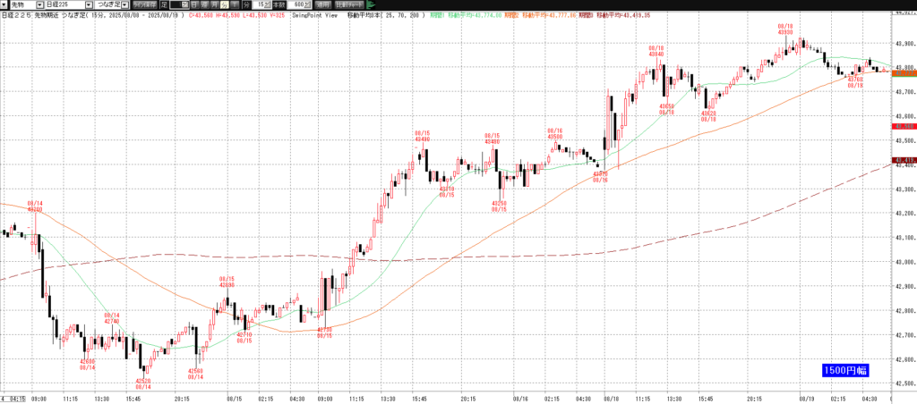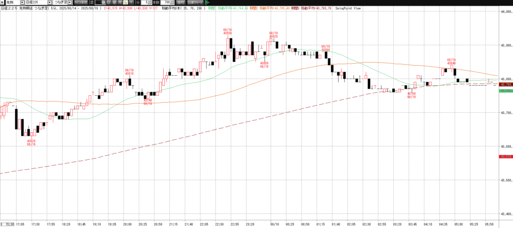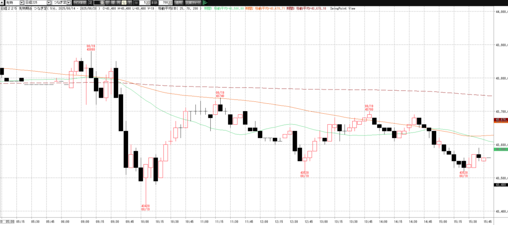 8月19日(火)トレード記録 2025.08.19 前営業日(8月18日(月)) ナイト終了後のチャート 60分足 15分足 5分足 トレード戦略 (省略) 8月19日(火) チャート 60分足 15分足 5分足 トレード結果 ノートレード