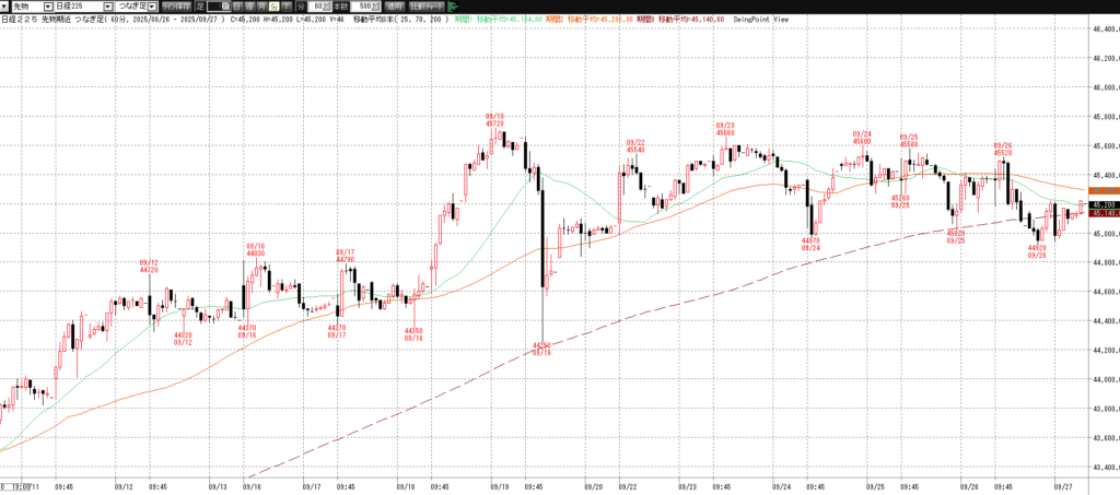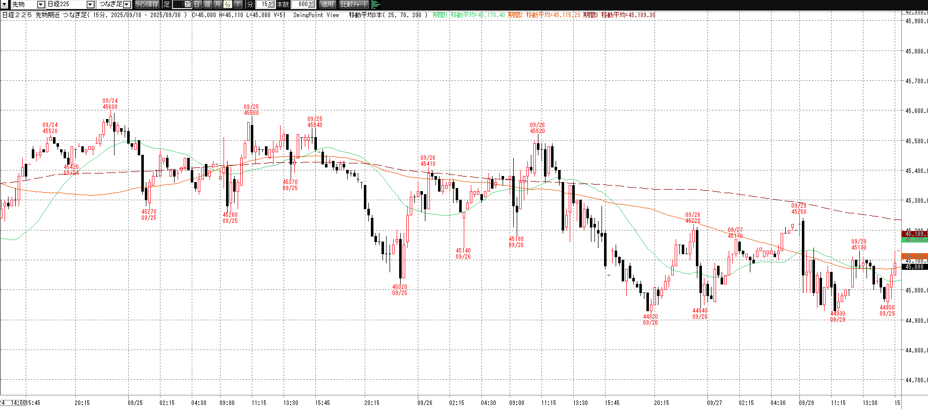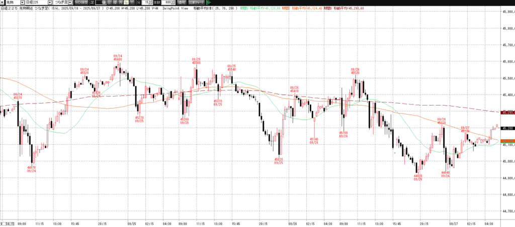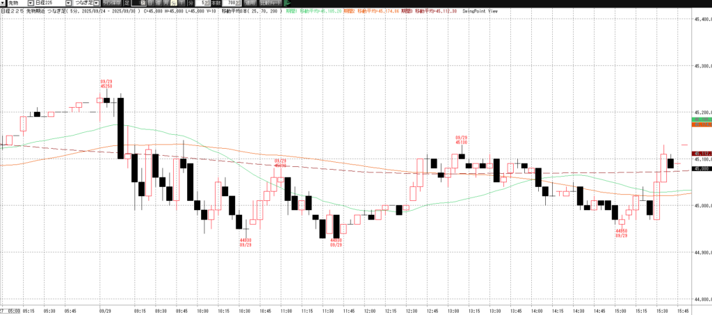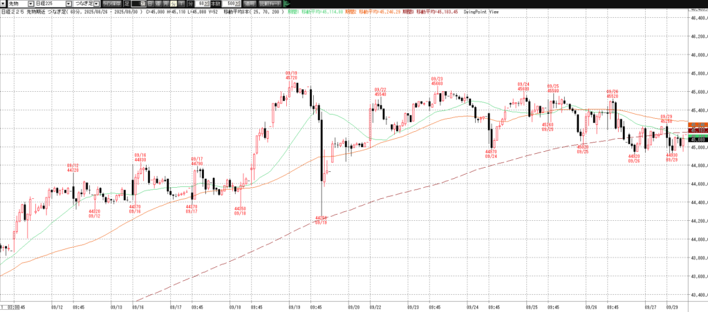 9月29日(月)トレード記録 2025.09.29 前営業日(9月26日(金)) ナイト終了後のチャート 60分足 15分足 5分足 トレード戦略 (省略) 9月29日(月) チャート 60分足 15分足 5分足 トレード結果 ノートレード